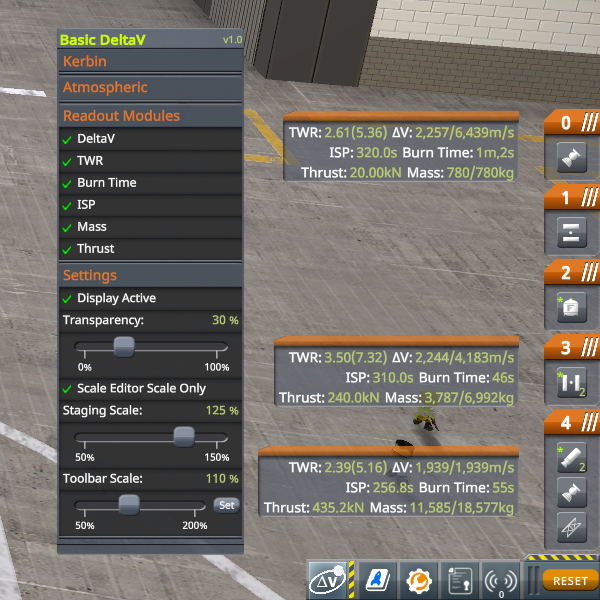 | Abstract | A simple addon to provide DeltaV and related info while in the VAB/SPH |
