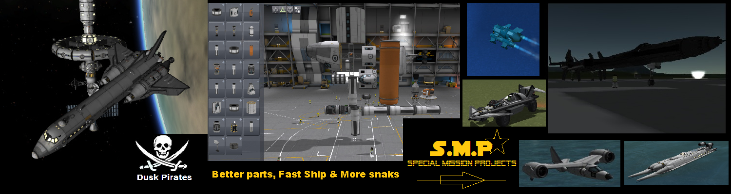 | Abstract | Welcome to S.M.P ( Special Mission Projects ) SMP Mod V3.0 This mod is made up with tweaked parts I copied form the default parts and edited there stats then used the twerked parts to get better use and to get more out of them, some parts will be abit over powered and up a overall upgrade form the default parts. If you have any ideas or want more please let me know. If you don't wish the use them or don't agree with this delete them. There parts can be use with V1.2 there that's are adjusted abit that's all list of updates: V1.0 ... crap sorry about the over welling mods in V1.0 V2.0 I removed a ton of stuff and made removed the over welling need for mods. V2.5 done V3.0 this update adds a few new parts such as fueled crew cabins and copits and up dates to some SMP ships and new ones. Some copits & cabins will have fuel and extra upgrades making them a bit better then the stock parts. V4.0 unknown info. Install is easy just no it how you install any mod the start |